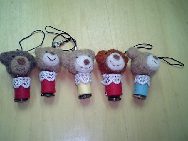 原毛フェルトをサクサクして、くまさんのストラップを作りました。