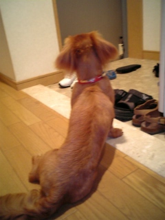 連れて来てくれた両親が帰った後は、しばらく玄関でくんくん鳴いていました。